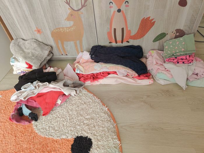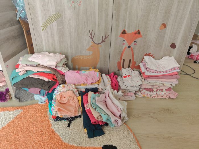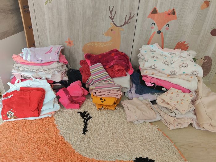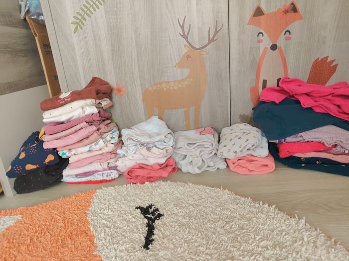 Je vends un gros lot de vêtements bébé fille Pyjama 1M 1 3m 2 6m2 9m2 12m6 Body 3m 1 6m 3 9 m 12 12m 4 Tee short long 3 m 8 6m 8 9m 20 Pull 3 m 1 6 m 3 9 m 3 Pantalon 1 m 5 3m 8 6m 6 9m 10 12 m 1 Robe 3m 3 6 m 1 9m 3 Gilet 1m 1 3m 5 6m 2 9m 4 Tee short court 3m 4 6m 14 15 Collant taille 15/16 Chaussette une 10zaine de paires Body court 3m 4 6m 13 ( dont a bretelles) 9m 5 Veste 3m 1 6m 1 9m 1 Chemise 3m 4 Gigoteuse 3 0-6mois Short 6m 4 9m 2 Total de 210 articles ou plus Tout est en très bon état Je vends le tout pour 120€ ça revient à 0.57 centimes l'unité !!