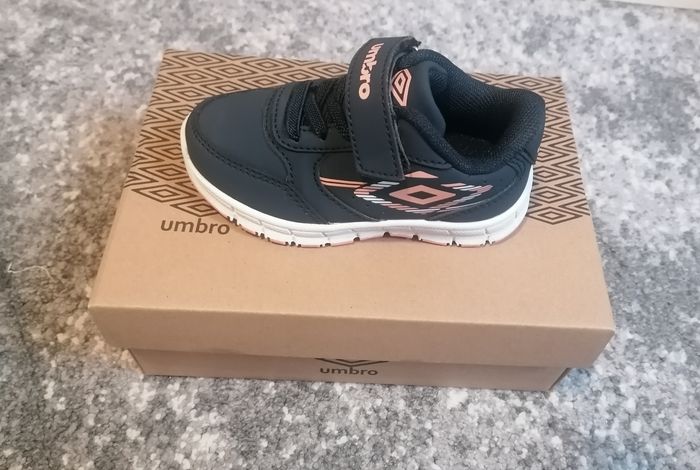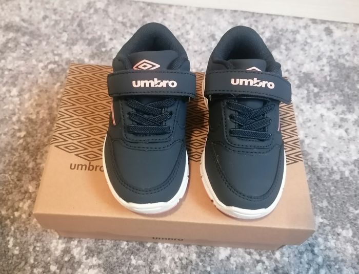 Basket fille authentique umbro. Sous emballage ( achat magasin de sport à Paris) je ne peux pas les échanger (serré pour ma fille) Pointure 22. Bleu marine /rose. Fermeture scratches. 25€