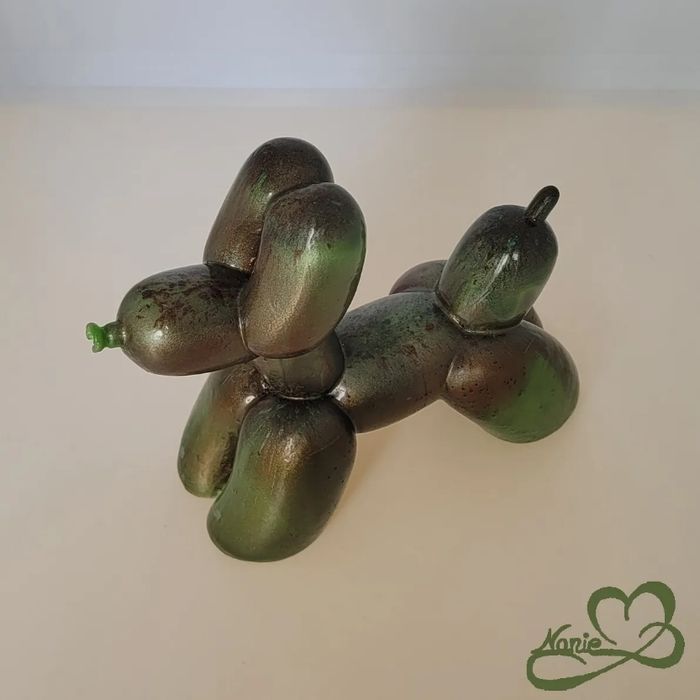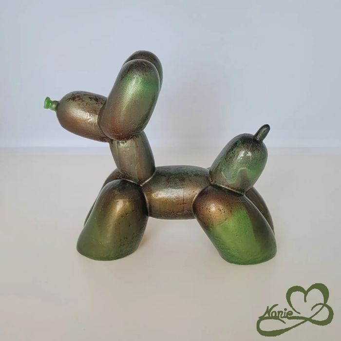 Cette figurine Chien vert et marron est unique et fait main. Dimensions : 14 x 11,5 x 5,5 cm