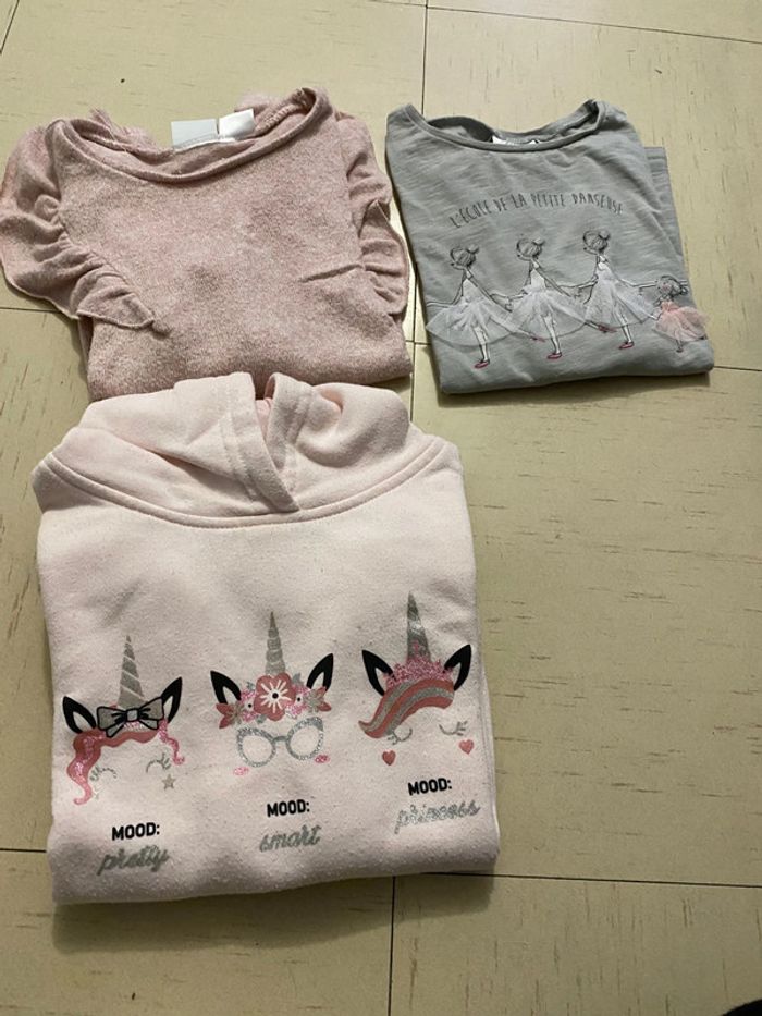 3 pulls 4-5 ans marque zara et primark pour le sweat. #fille4ans #4/5ans #zarafille #licornes #danseuses