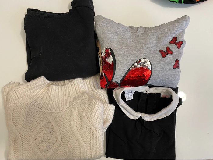 1 pull Zara noir à col blanc taille 3/4 ans pull beige primark taille 4/5 ans sweat noir zara taille 4/5 ans sweat minnie primark taille 4/5 ans