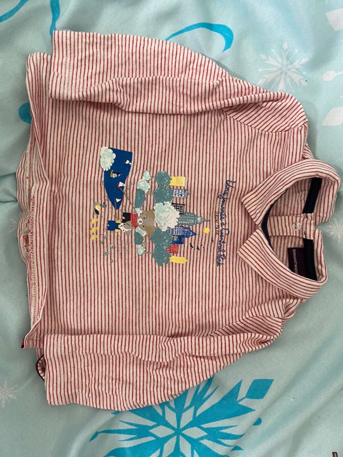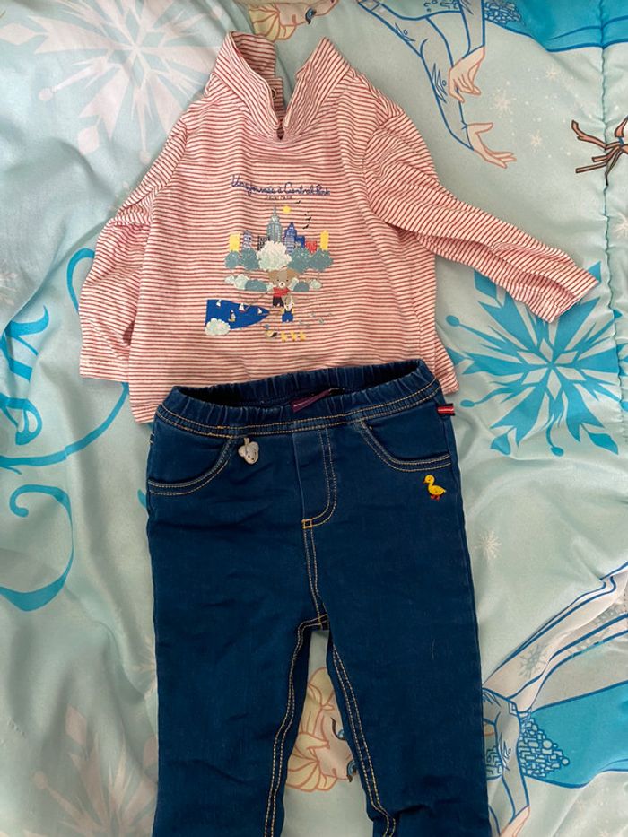pantalon double à l’intérieur avec pull blanc à rayures rouges et fermeture dans le dos marque sergent major taille 9 mois