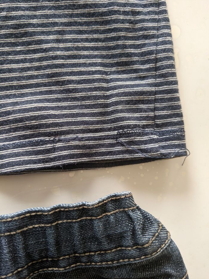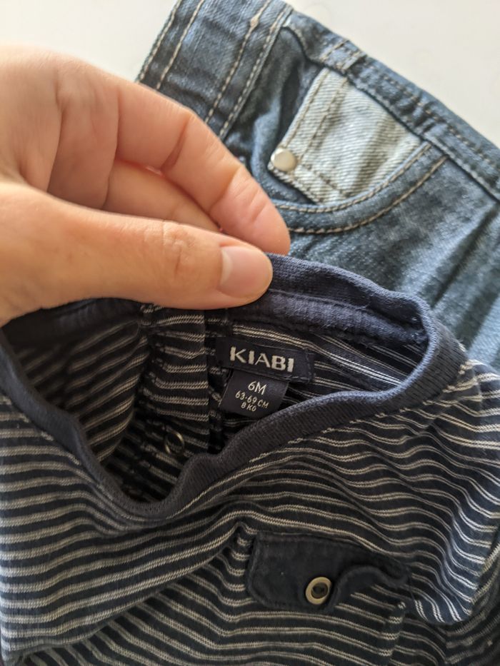 Jean tape à l'oeil+ tshirt Kiabi taille 6 mois, Très bon état général, juste un fil tiré à l'arrière du t-shirt (voir photo)