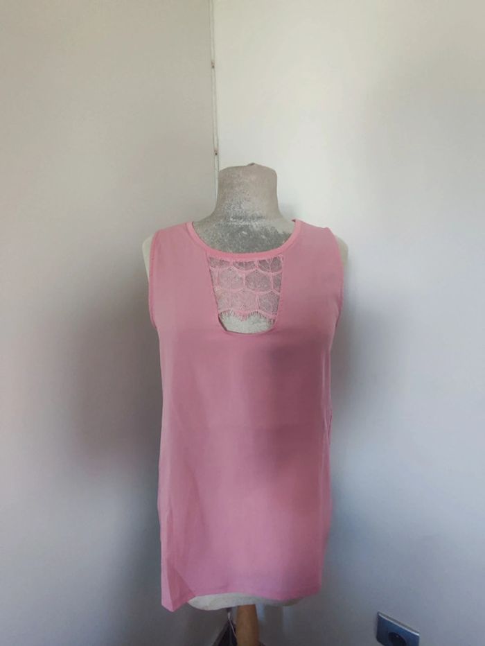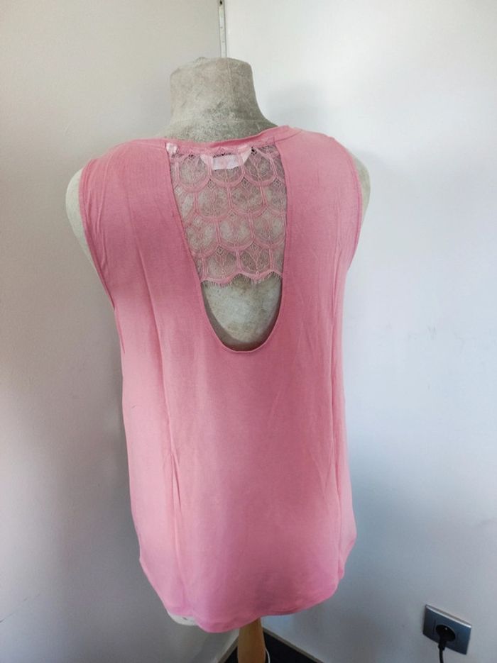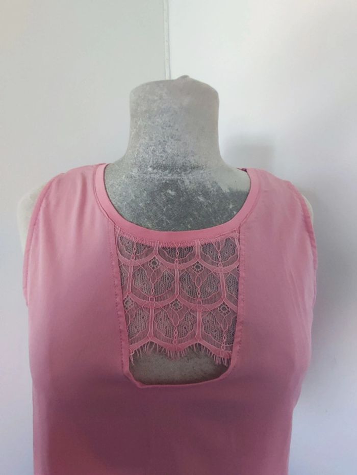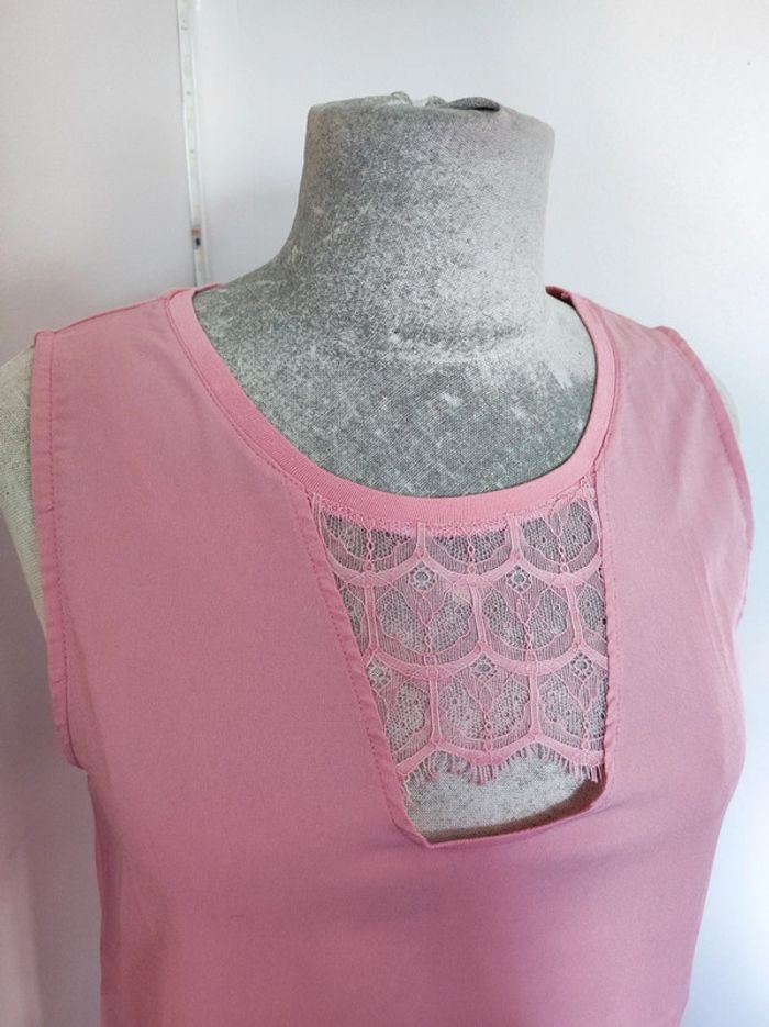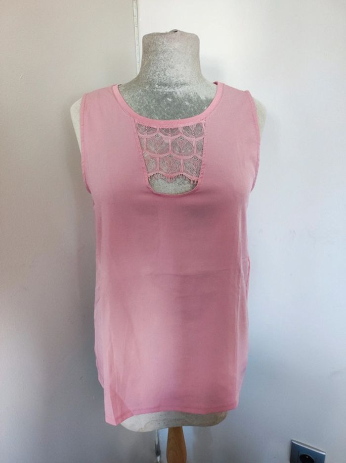 Haut Naf Naf. Bi-matière. Porté une fois. #chic #classe #fluide #dentelle #blouse #darkpink #rosepoudré #vieuxrose #élégant #mvasseur74430Femme #débardeur #tunique