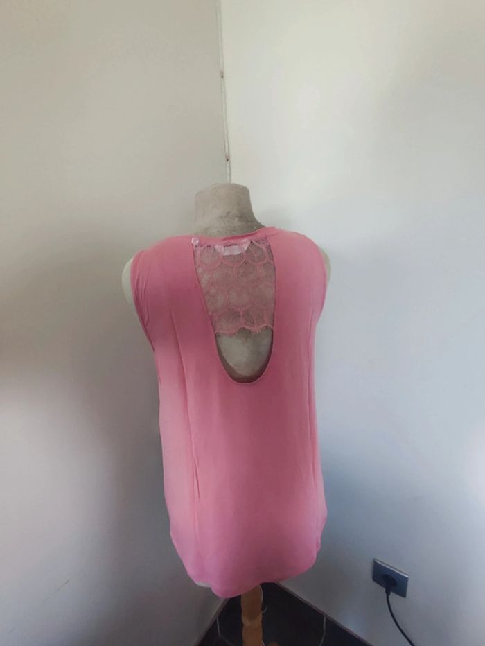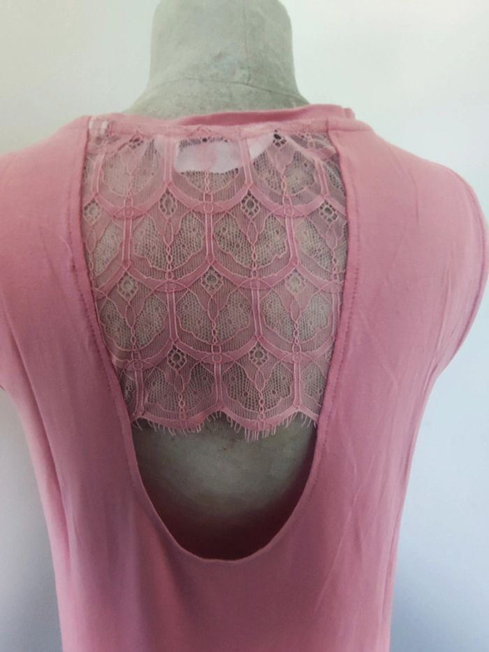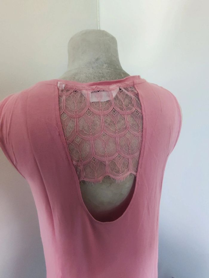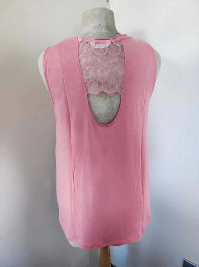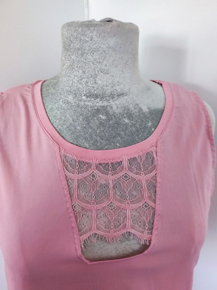 Haut Naf Naf. Bi-matière. Porté une fois. #chic #classe #fluide #dentelle #blouse #darkpink #rosepoudré #vieuxrose #élégant #mvasseur74430Femme #débardeur #tunique