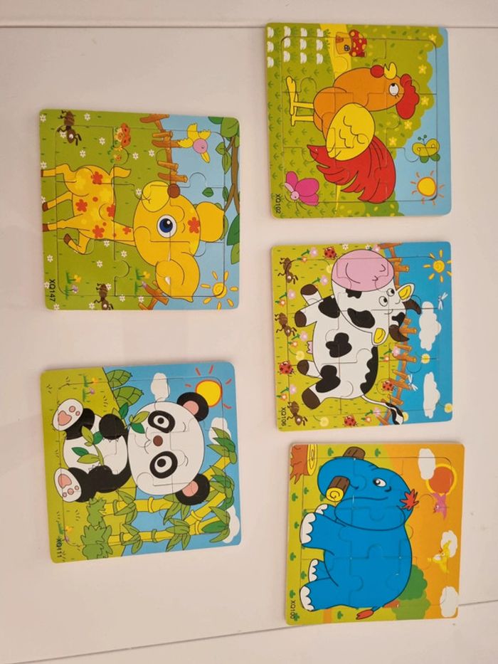 Lot de 5 petits puzzle en bois 14,5x14,5