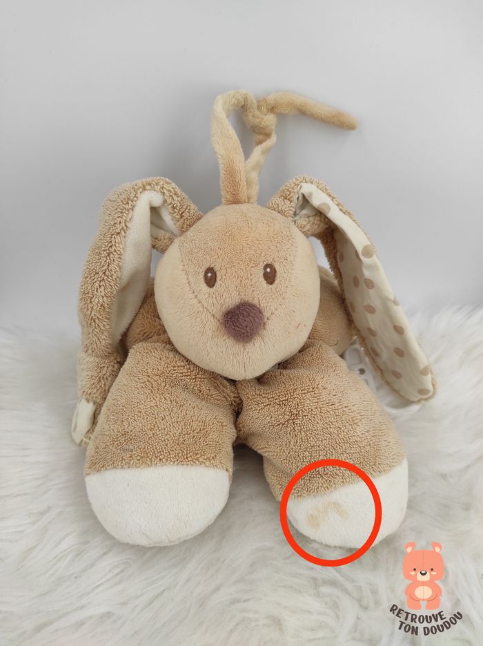 🐇 Doudou Musical Lapin Beige et crème avec empiècement tissu à pois, collection Cappuccino, Nattou 📏 Dimension : 20 cm environ ✨ Occasion, bon état, tâché à la patte, musique OK 🧼 Lessivé avec lessive hypoallergénique 👀 Vous achetez le doudou que vous voyez sur les photos.