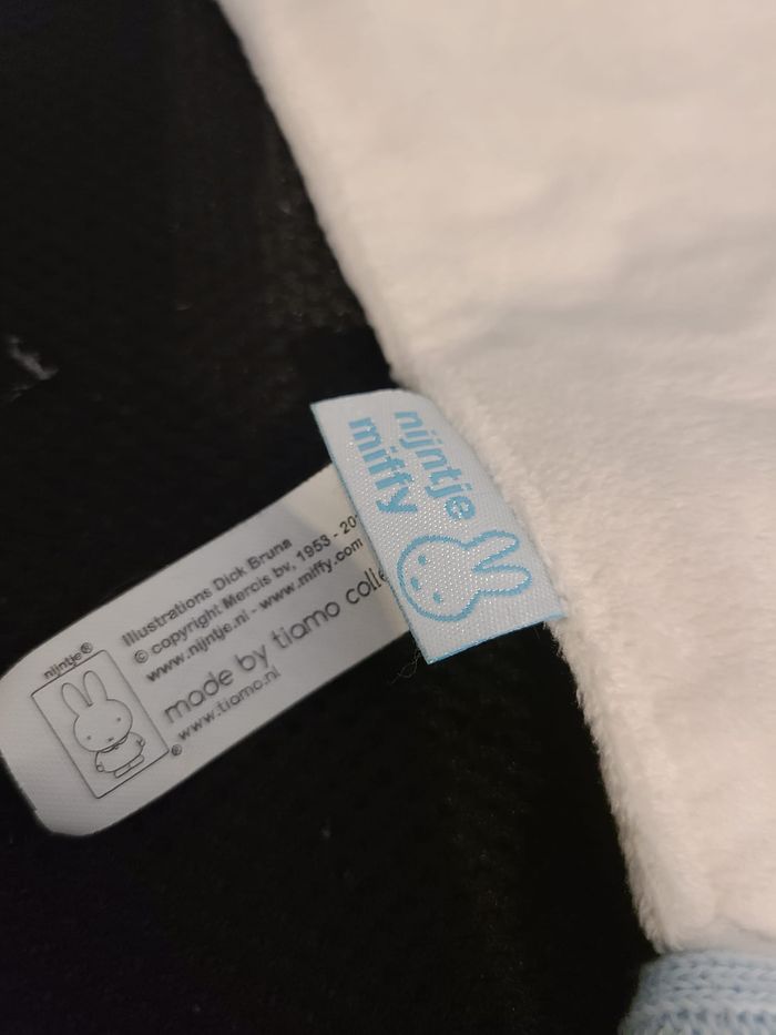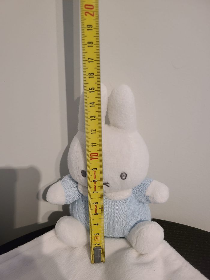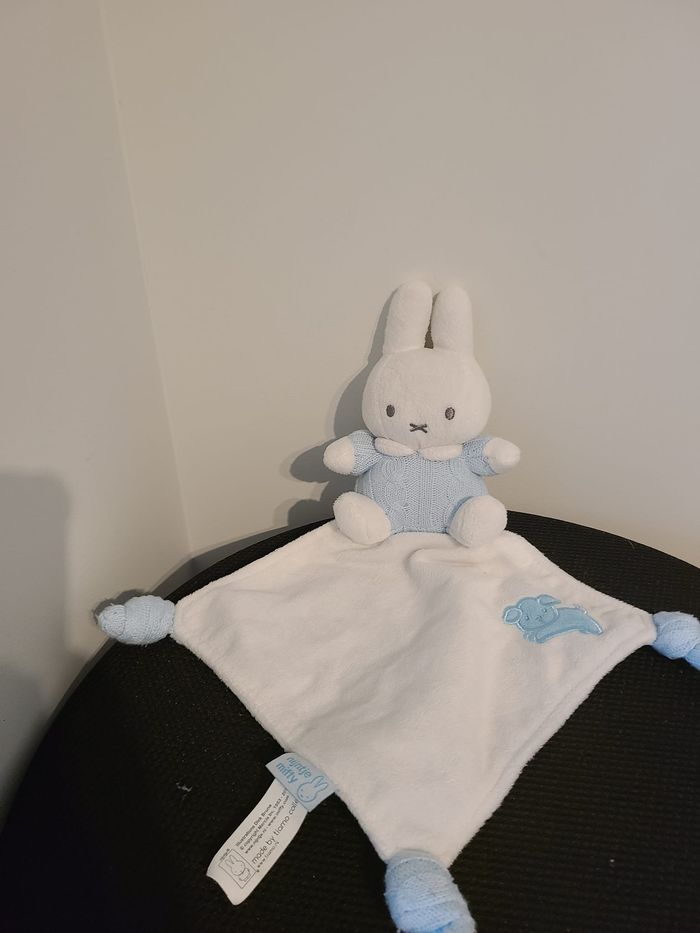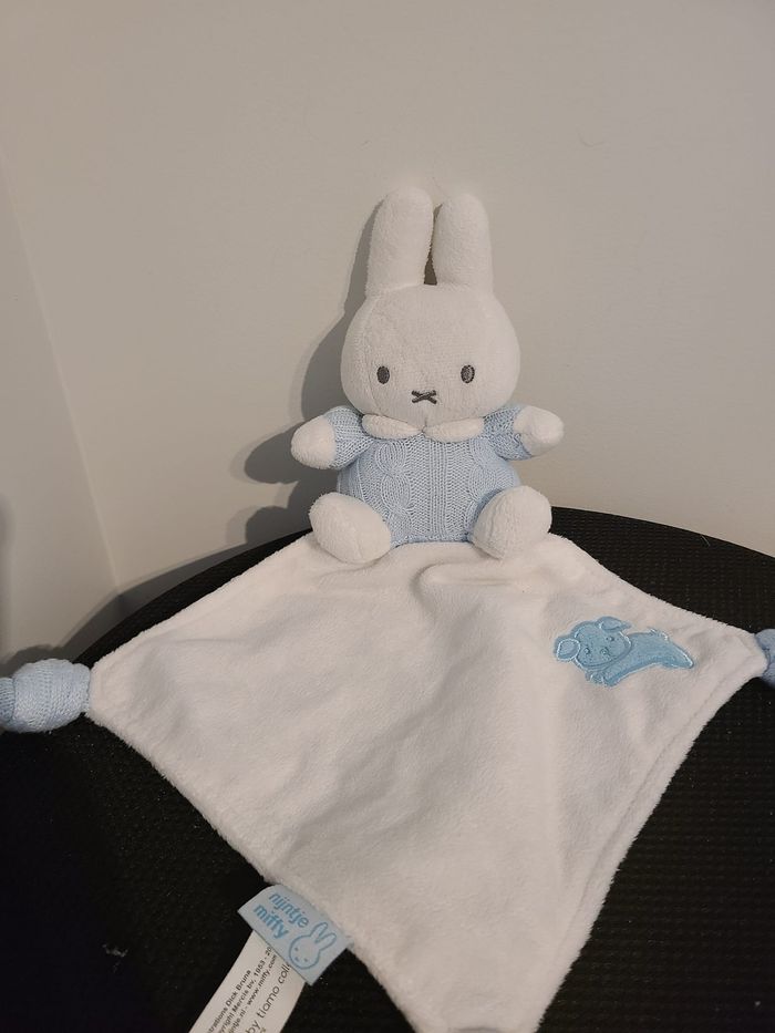 Doudou lapin MIFFY mouchoir blanc bleu clair laine 128