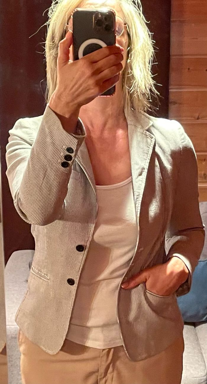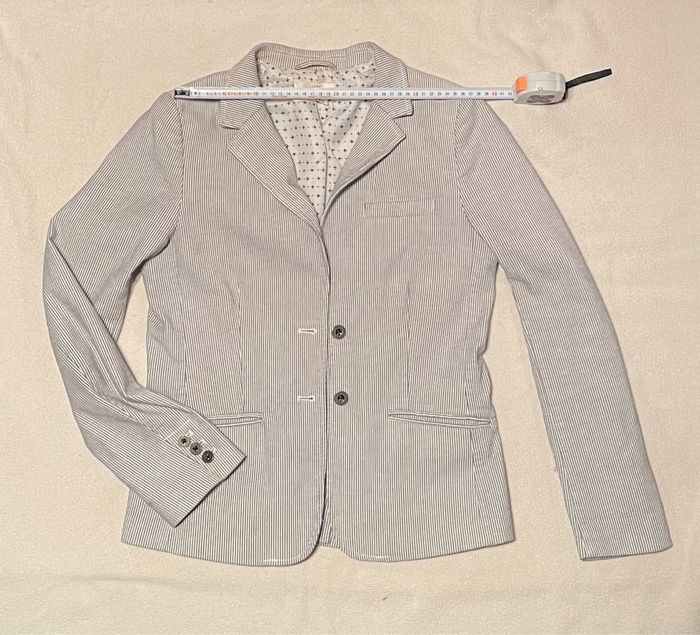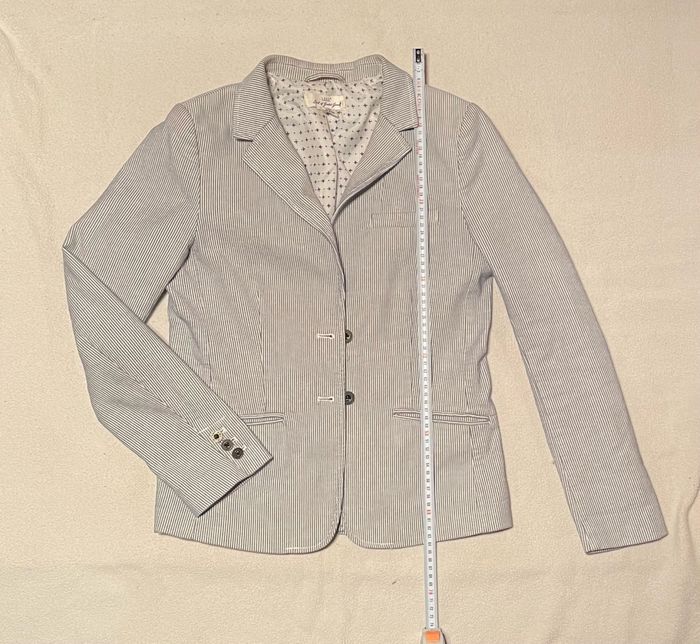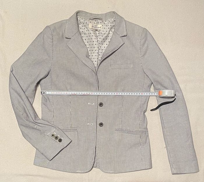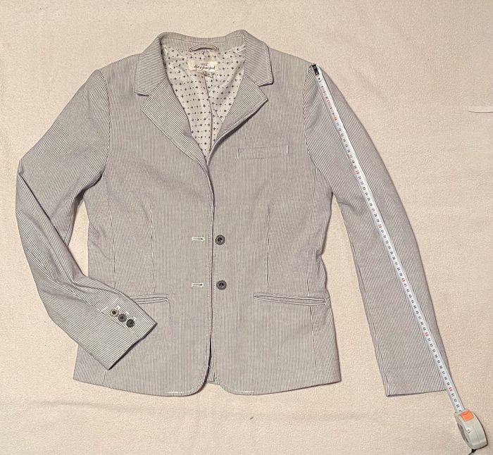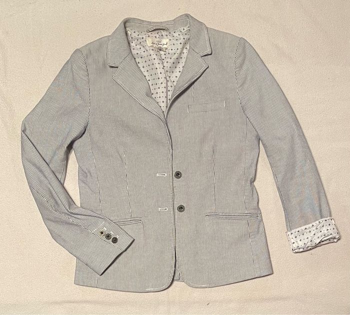 Blazer fines rayures bleu clair et blanc . Très bon état. Je mesure 1m72