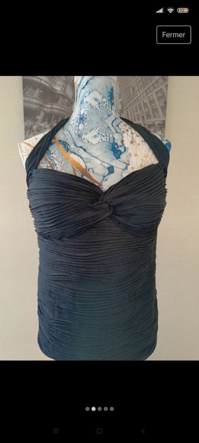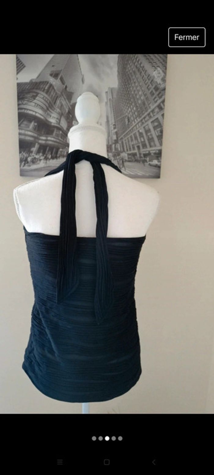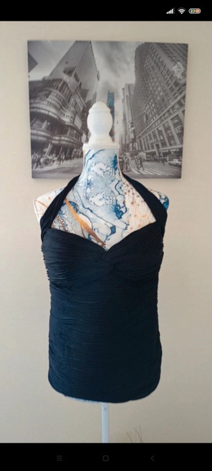 Débardeur sans manche, attaché dans le cou. Taille 42 ( étiquette coupée) marque Morgan . Effet transparent sur le bas