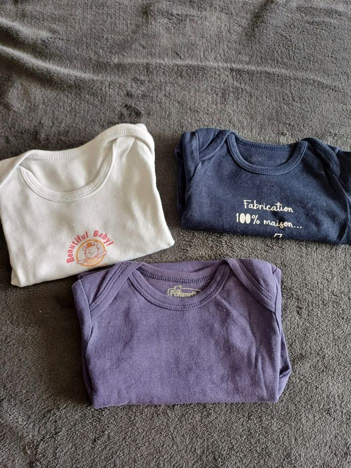 Lot 3 bodys T 6 mois 2 manches courtes 1 manche longue