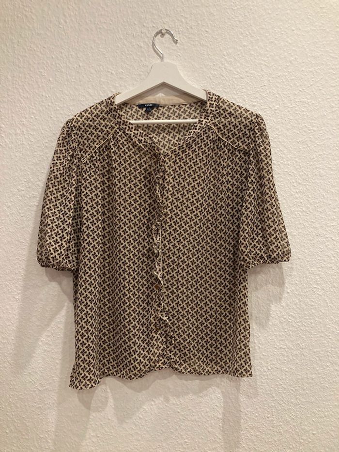 Blouse à motifs couleurs neutres avec une petite touche de doré (voir 3 eme photo) Taille L