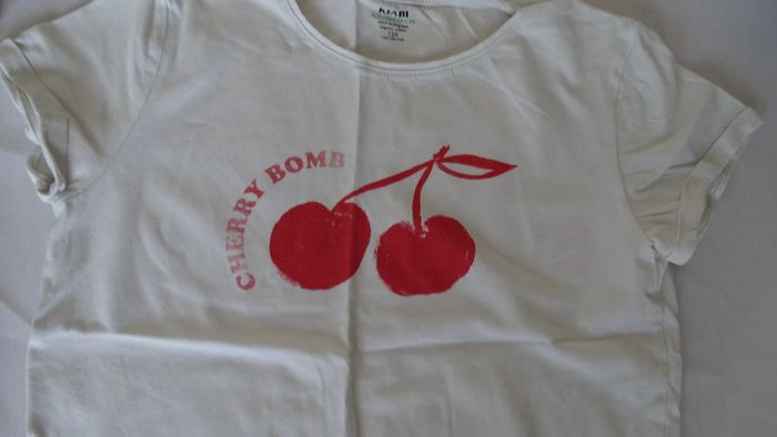 Tee shirt manche courte blanc motif "Cerise" Kiabi Taille 12 ans