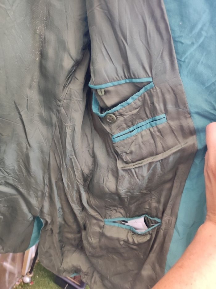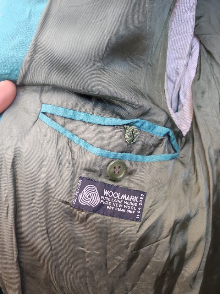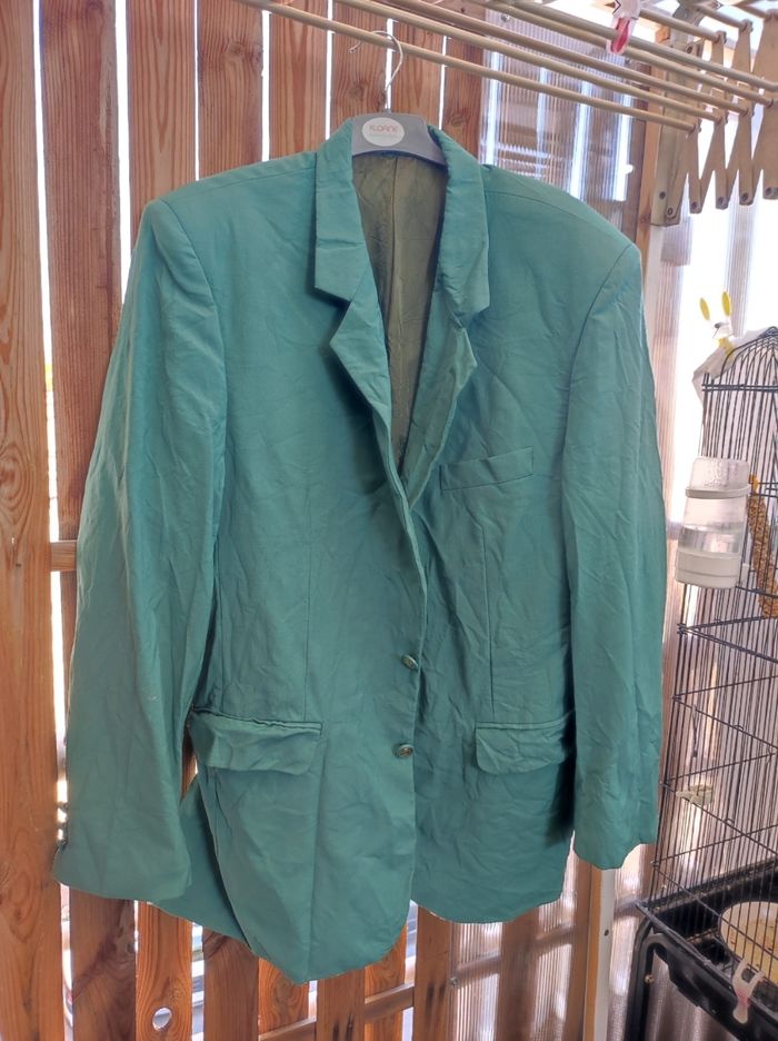 Veste taille pour homme couleur vert vintage ( de mon papa) à était laver mais pas repasser ( d'où l'aspect je n'ai plus de fer, HS). De taille XL marque woolmart en bon état.