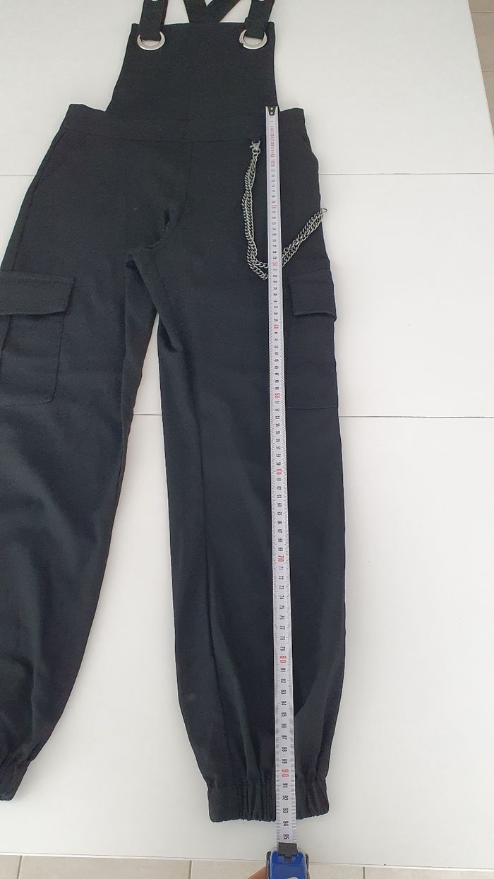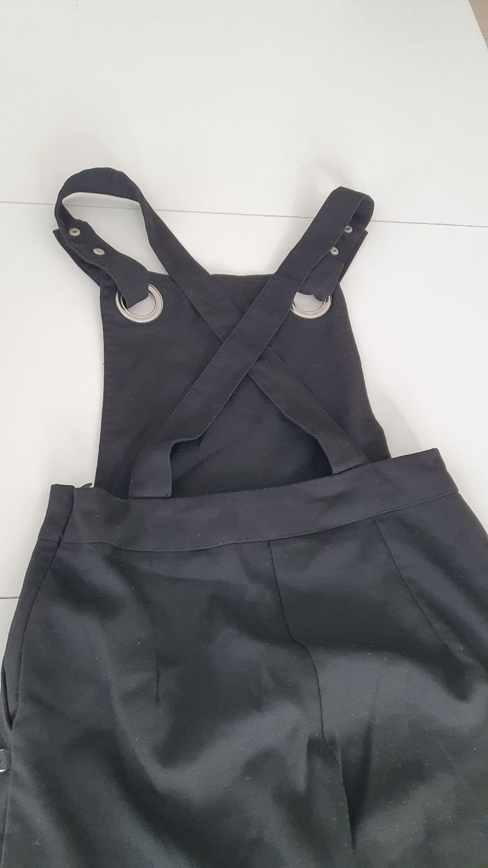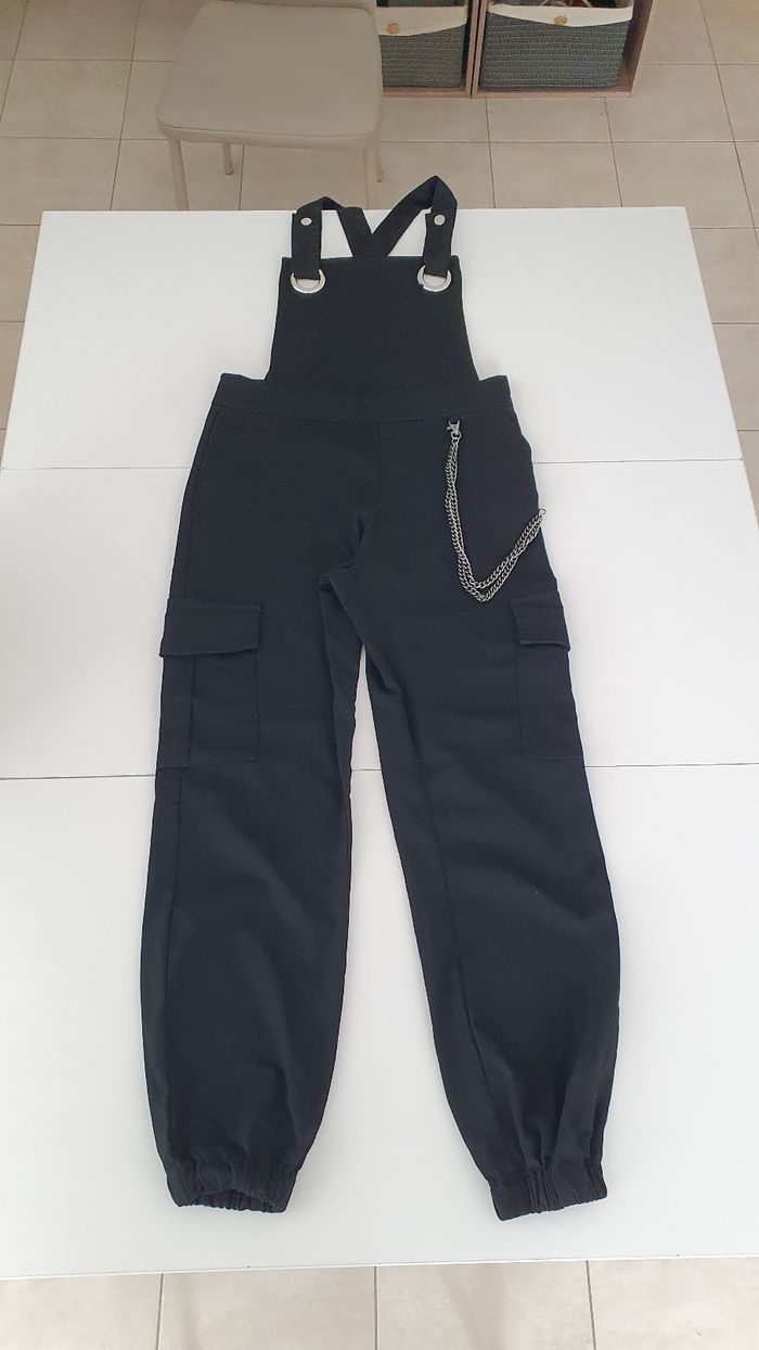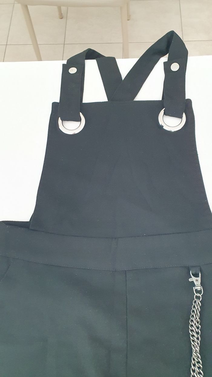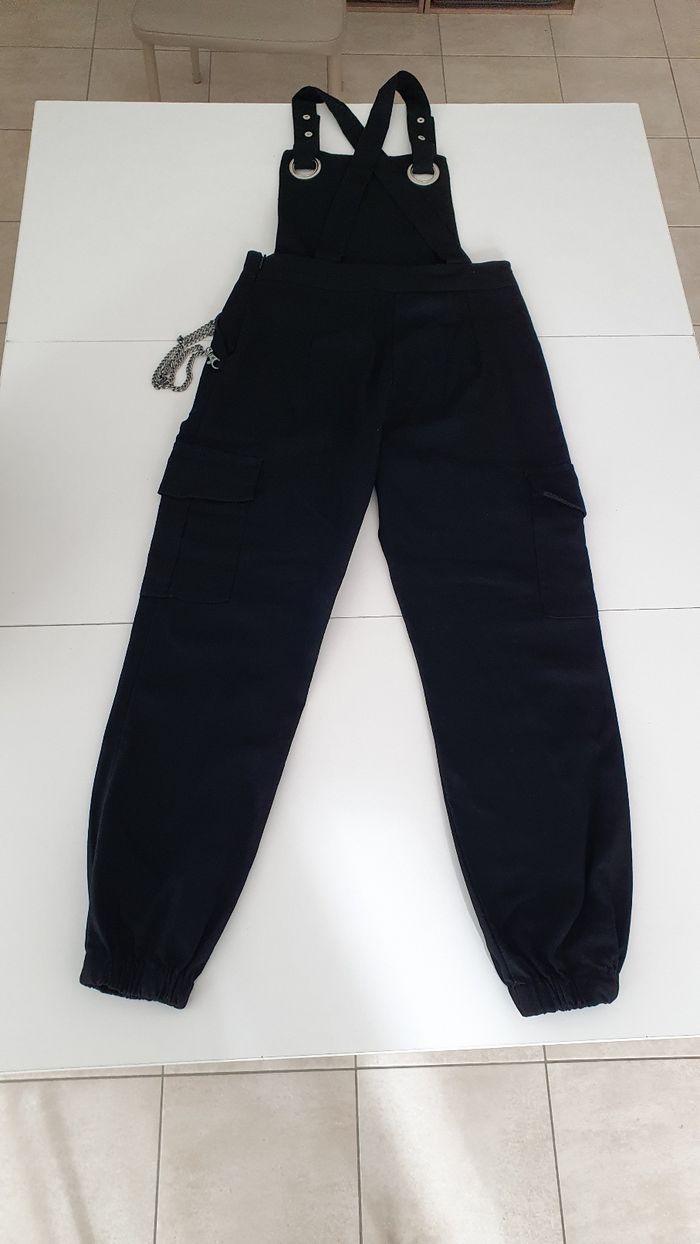 Salopette noir en parfait état Avec bretelles ajustables, elles peuvent être croisées ou non 2 poches sur les côtés et une chaine Il y a une fermeture éclair sur le coté