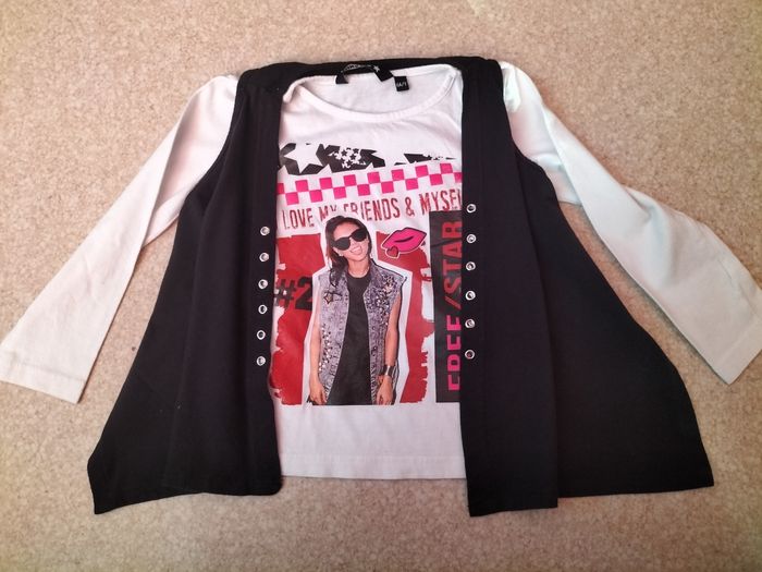 T-shirt 2 en 1 fille Très bon état Fait t-shirt et gilet Taille 6 ans Marque punkidz 2€50