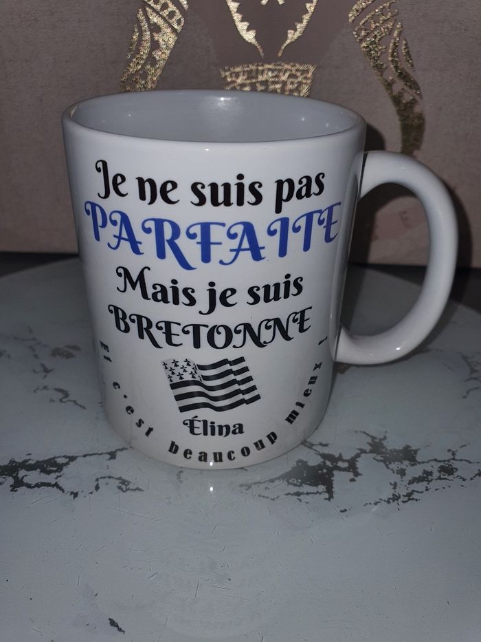 Mug je ne suis pas parfaite mais je suis bretonne et c'est presque pareil. Existe aussi au masculin Prénom non obligatoire Privilégier shop2shop