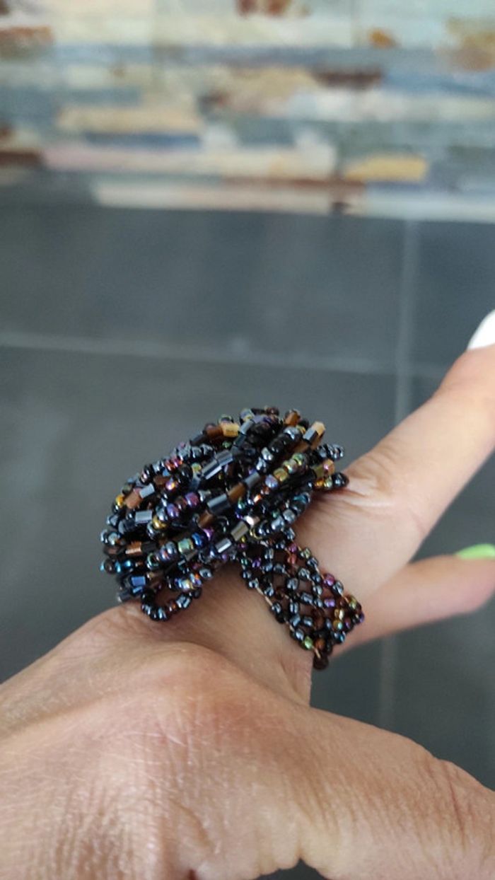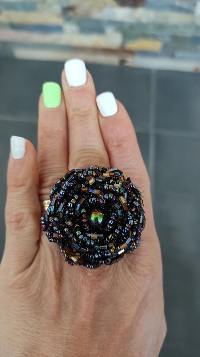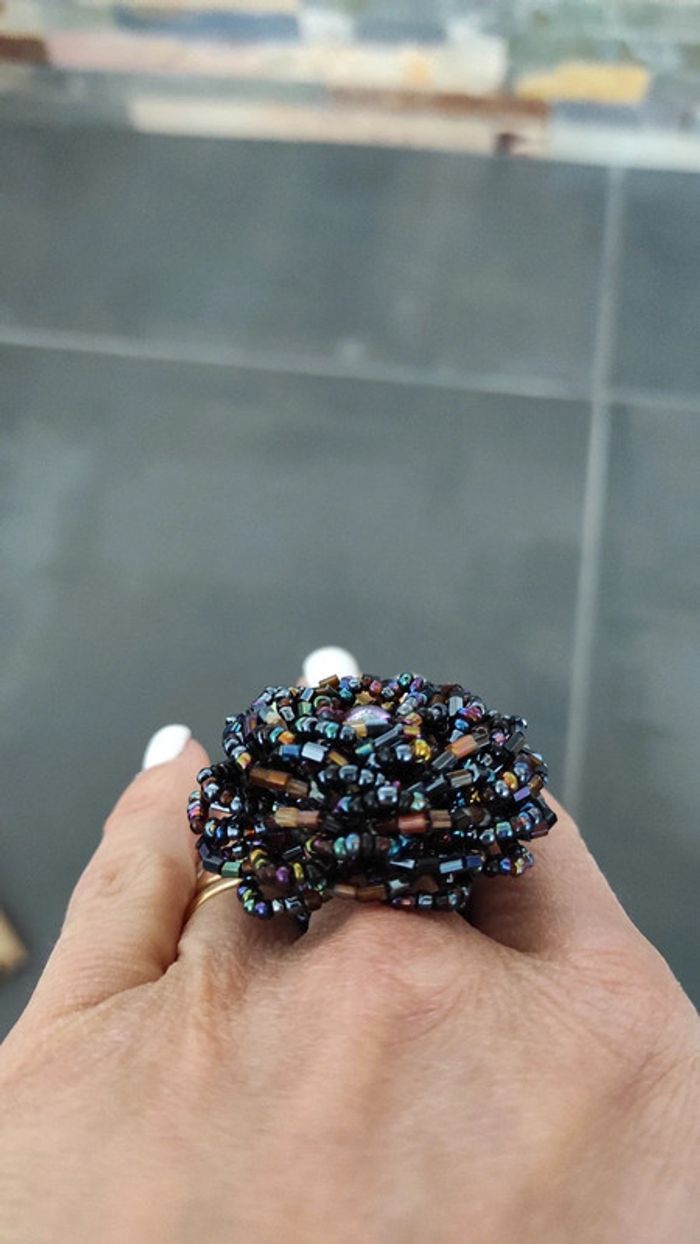 Belle bague en forme de fleur, réalisée avec des perles.