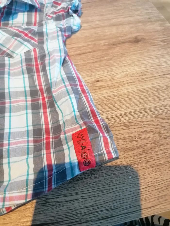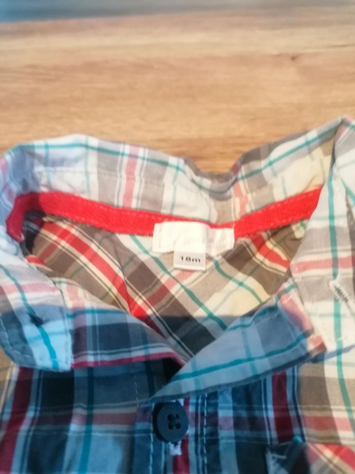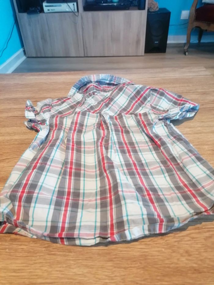 Bonjour, je vend cette chemise à manches courtes à carreaux de la marque Kimbaloo taille 18mois en très bon état. Lavé maison non fumeur.