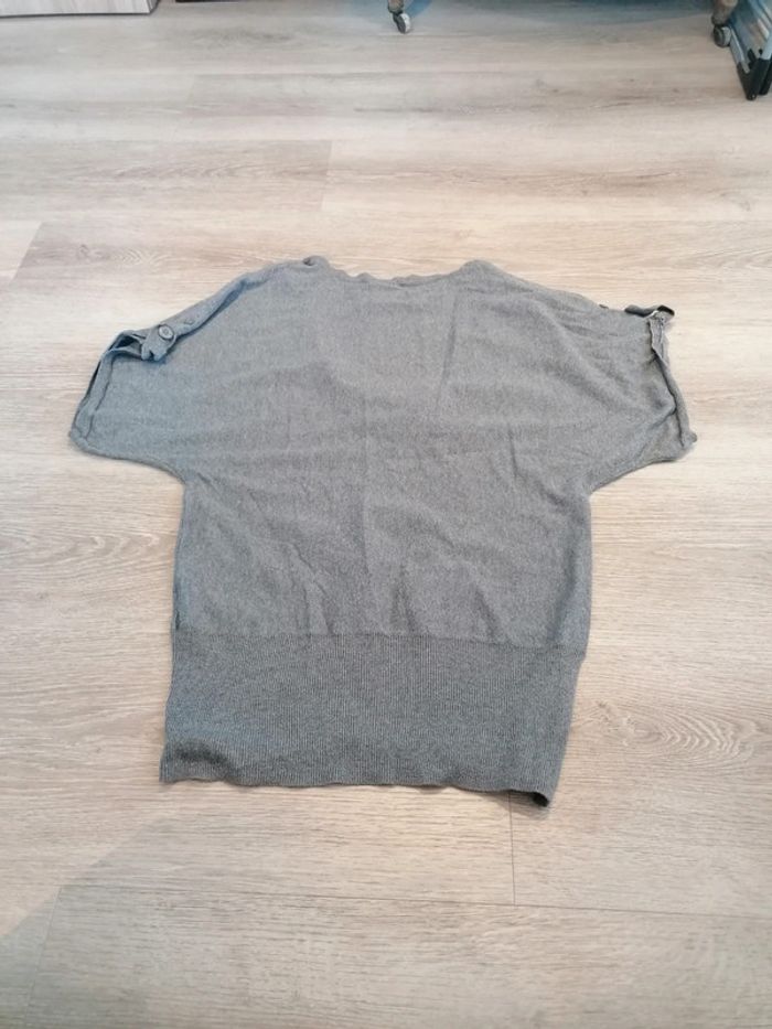 Bonjour, je vends ce tee shirt à manches chauve souris gris de la marque cache cache taille S en très bon état. Lavé maison non fumeur.