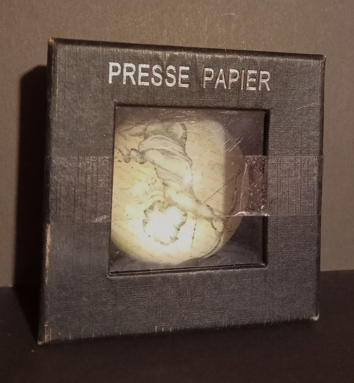 Presse-papier en verre  demi-sphère rond avec un motif angelot Cupidon. Tout neuf dans sa boîte Saint-Valentin
