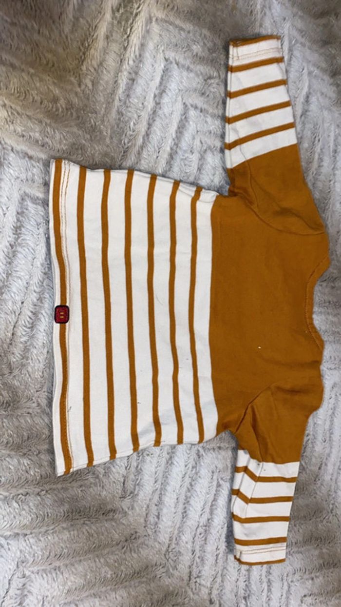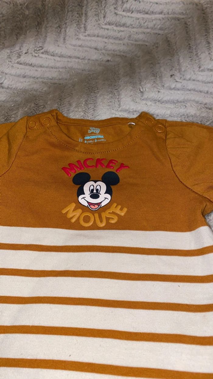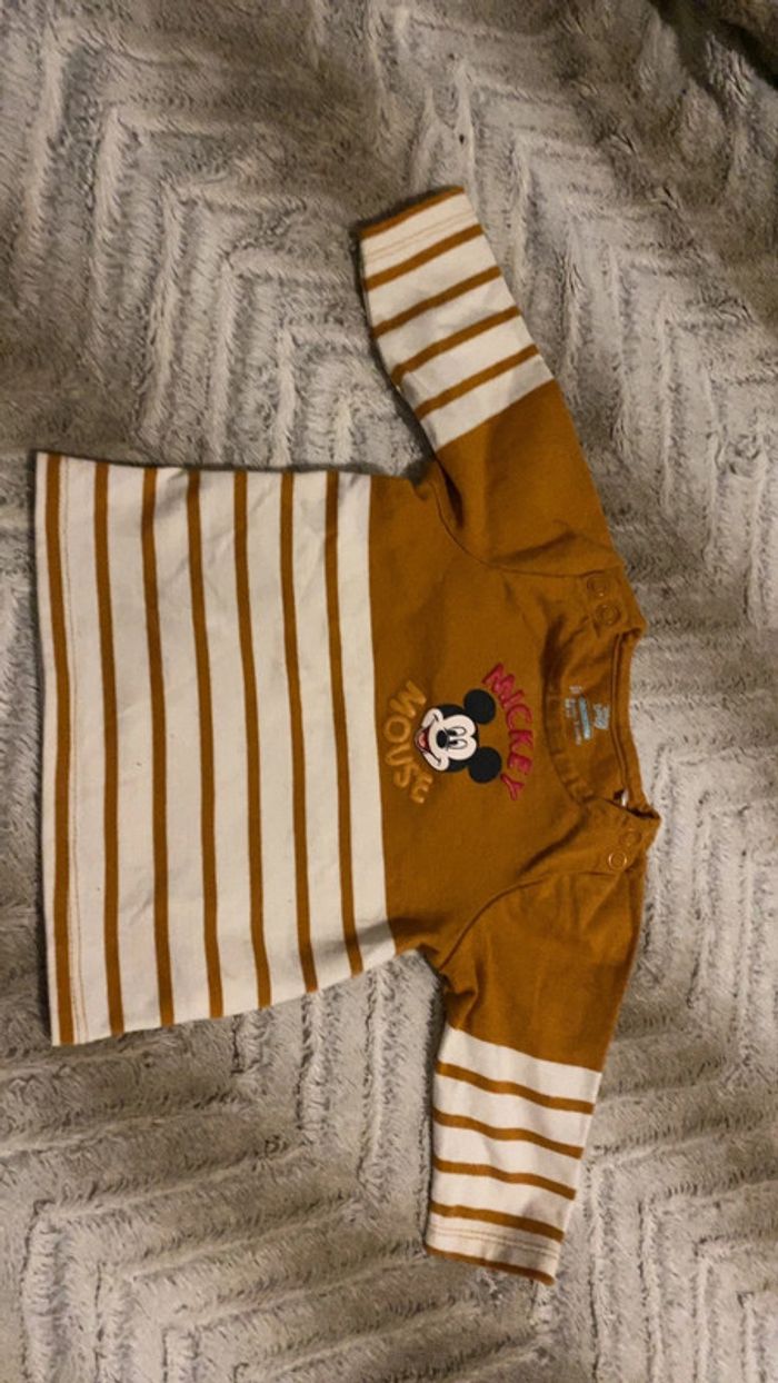#lafolie62_3moisgarçon Jolie tee shirt manche longue Mickey marron rayé beige tous doux confort #3mois #3moisgarcon #mickeymouse #mickeymousedisney #mickey