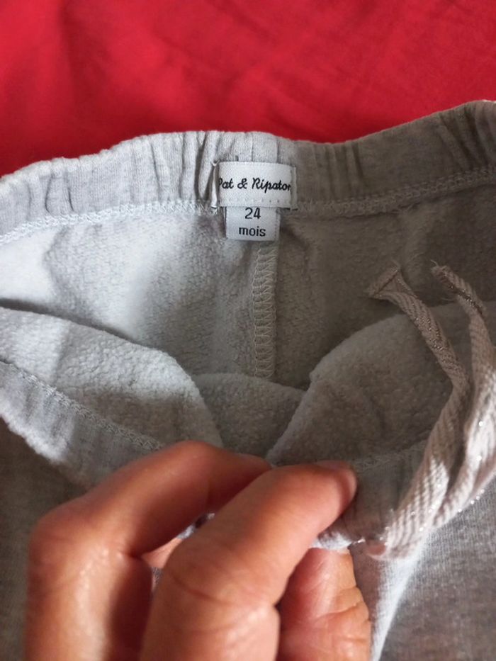 Étiquette 24 mois mais taille plus petit que les autres que j'ai de la même taille. Mini trou sur le jogging #lenkekepuces24mois