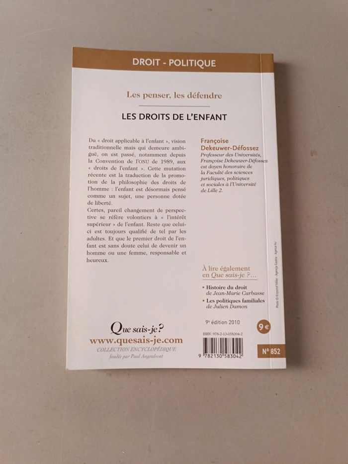 Les droits de l'enfant Françoise Dekeuwer-Défossez puf. Voici le lien pour voir tous mes livres : #romain75015_Livres. Envoi rapide et soigné bien protégé pour le transport. N'hésitez pas à faire un lot pour avoir des réductions et mutualiser les frais de port.