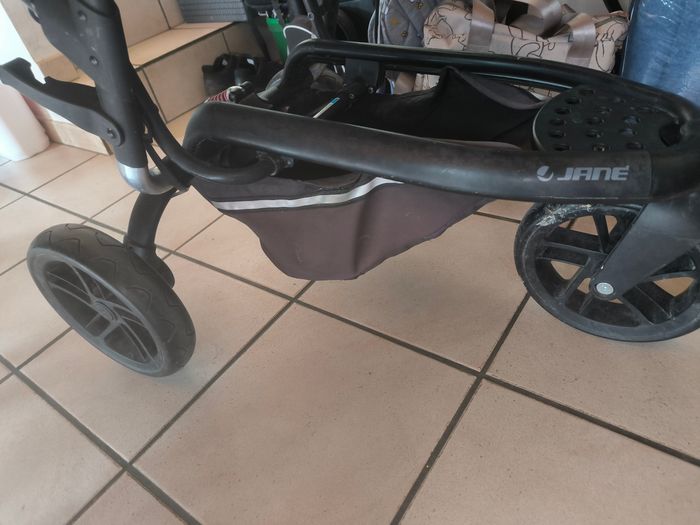 Vend poussette Jane trider Acheté en 2020 745€ elle nous a beaucoup servi Mais ça fonctionne encore très bien . La couleur du mode poussette et un peu passe avec le soleil ☀️ Le simili cuir des poignées est usée également mais n'empêche en rien son utilisation. Je suis disponible pour d'autres photos La poussette est composée du frein a main, amortisseur pour terrain compliqué roue renforcé Vendu avec sac à langer et habillage de pluie