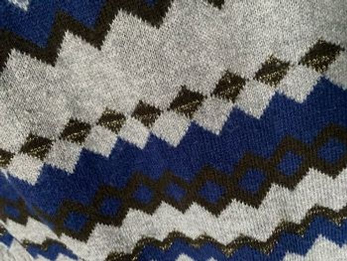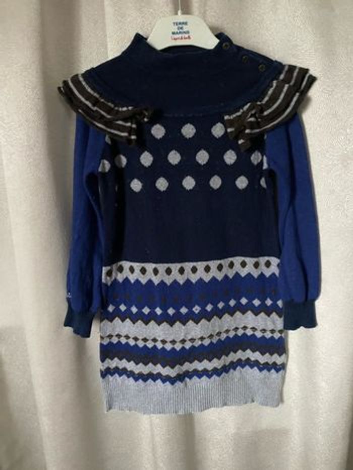 Robe chaude jacquard Tons bleu gris doré Bon état car Petites bouloches que vous pourrez enlever Taille 6 ans Plus d’étiquette de composition mais bien chaude Catimini