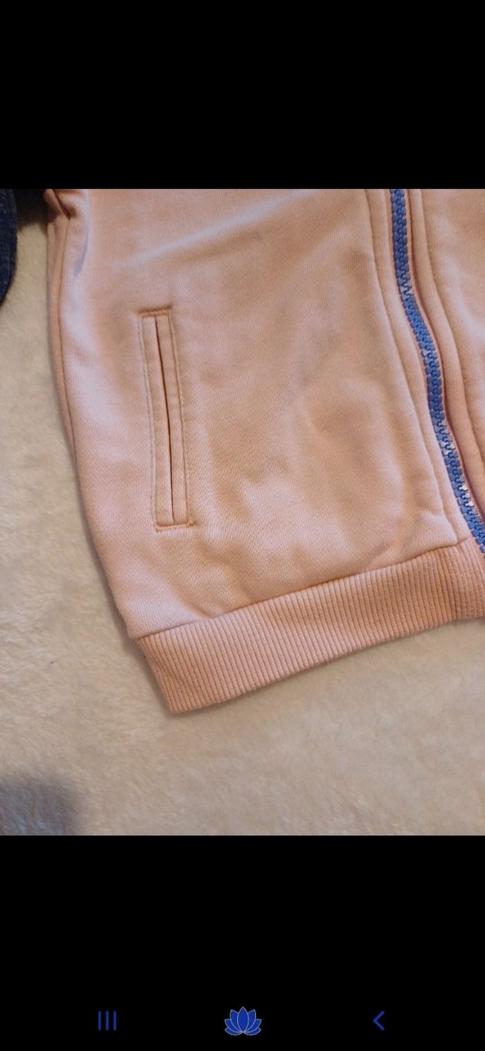 Jolie veste zippée à l avant avec capuche. Pièces au niveau des coudes. Poches à l avant