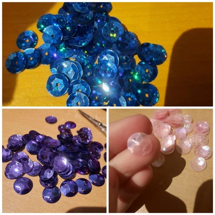 Lot 60 sequins perles rondes bleu violette rose