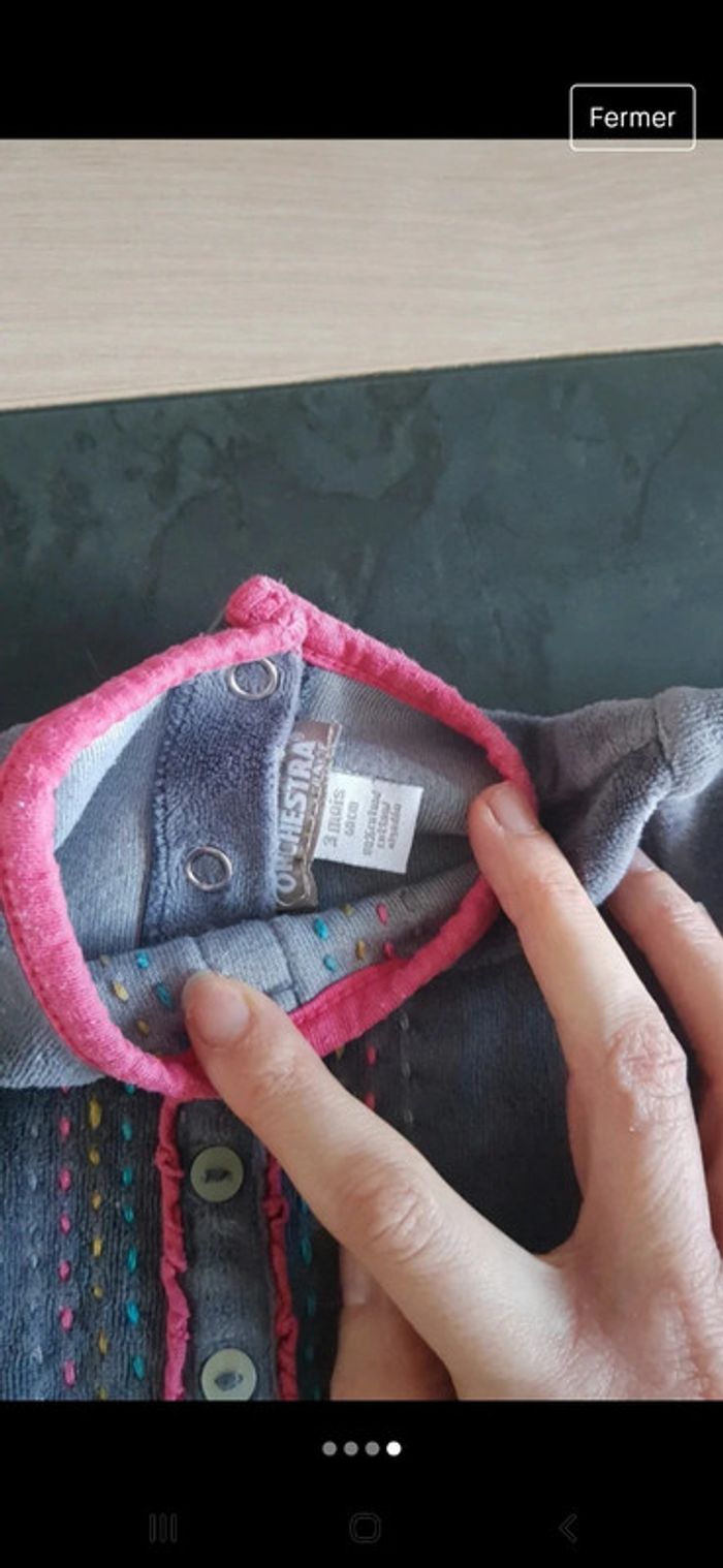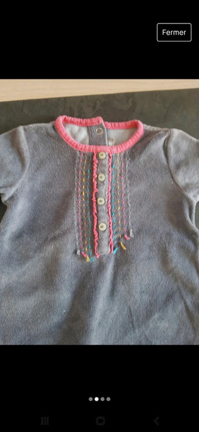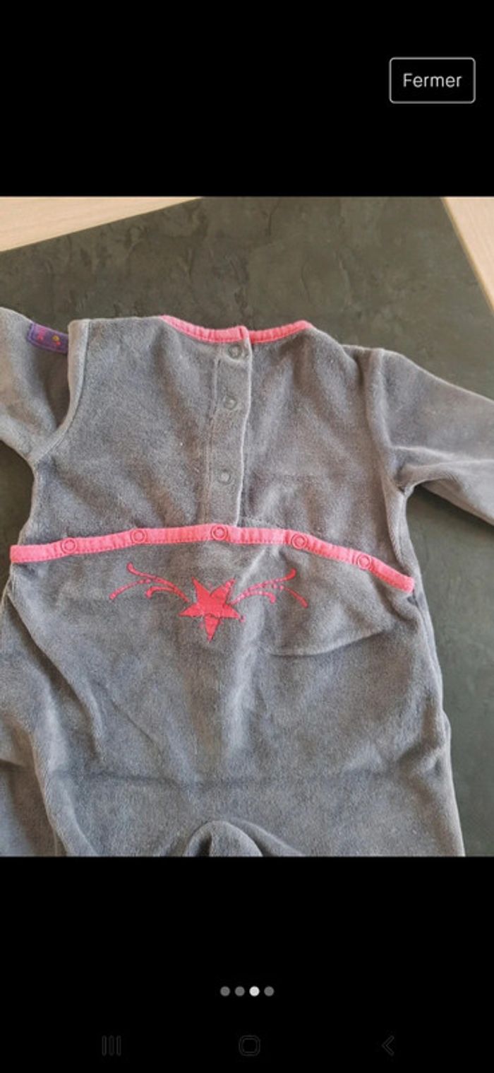 Pyjama gris et fushia . Avec étoile sur l arrière dans le bas du dos. État : impeccable comme sur photo. Marque : orchestra.