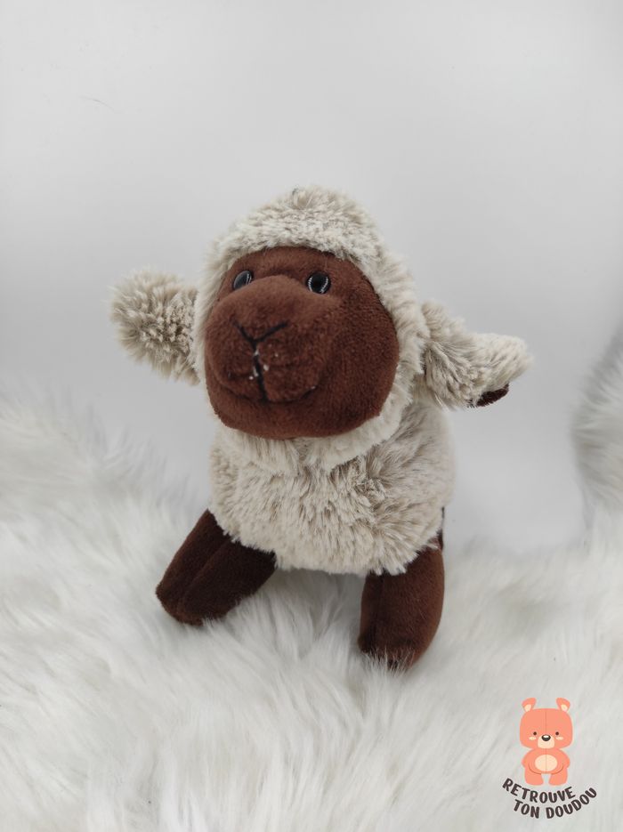 🐑 Peluche Mouton marron et beige chiné, Minifeet 📏 Dimension : 20 cm environ ✨ Occasion, excellent état 🧼 Passage vapeur 👀 Vous achetez le doudou que vous voyez sur les photos.