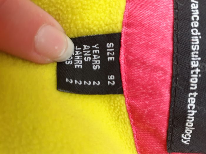 Taille 2 ans avec pare neige et manche serre au poignet pour éviter que la neige rentre Mis 1 semaine