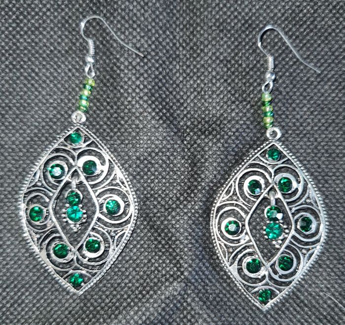 A la vente, en très bon état, cette jolie paire de boucles d'oreilles pendantes argentées. En semaine, cet article peut vous être déposé à l'Espace Européen de l'entreprise, Schiltigheim.