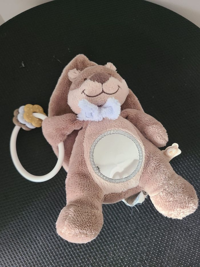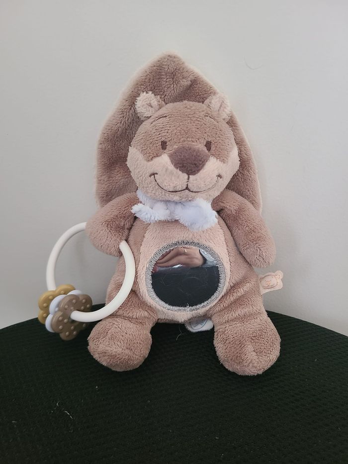 DOUDOU PELUCHE ECUREUIL MARRON TAUPE ROSE miroir HOCHET SCRATCH 20cm noukie's 129