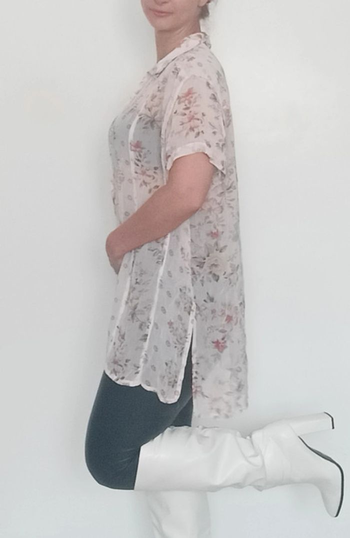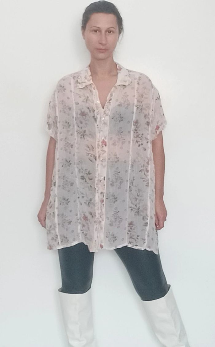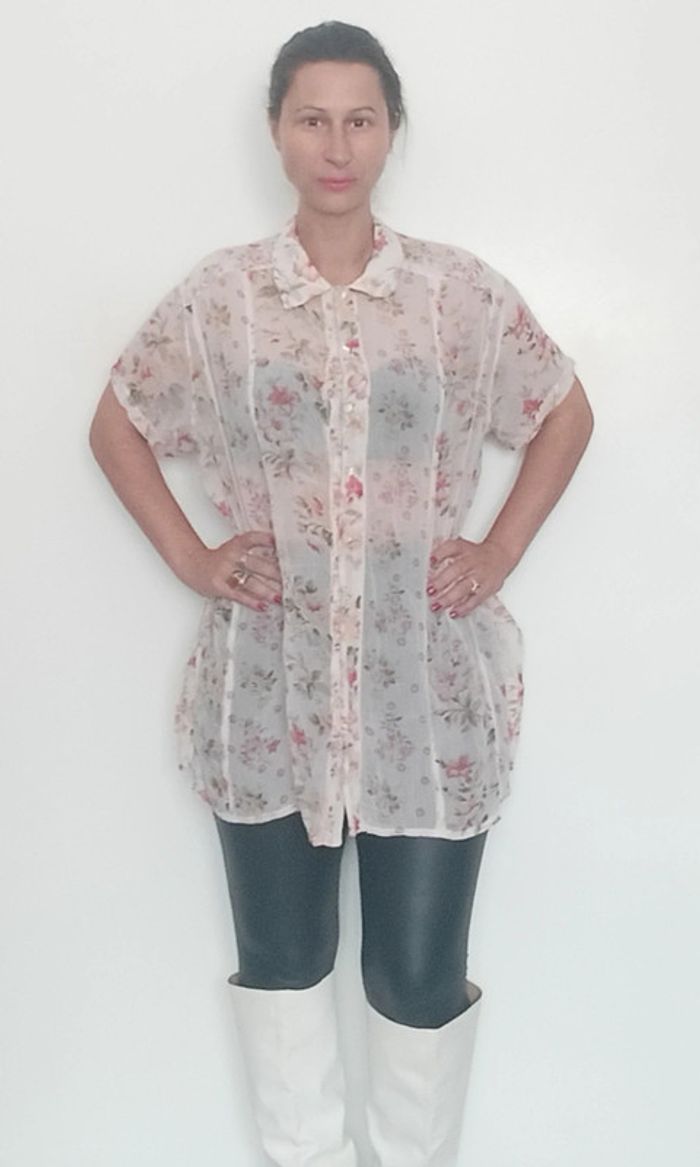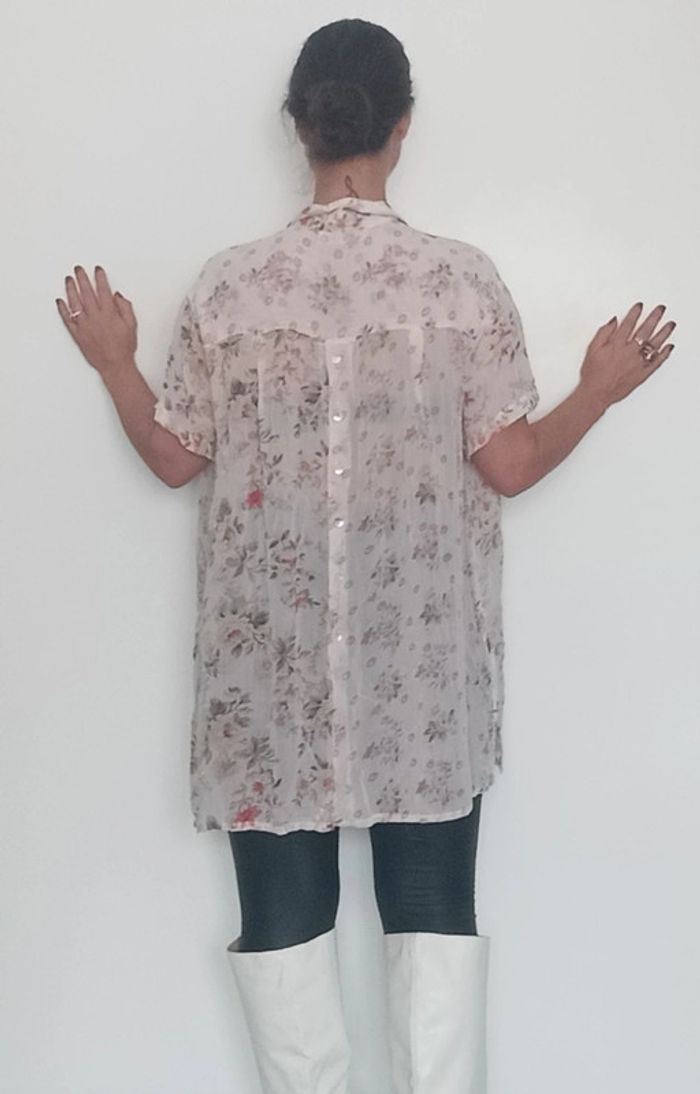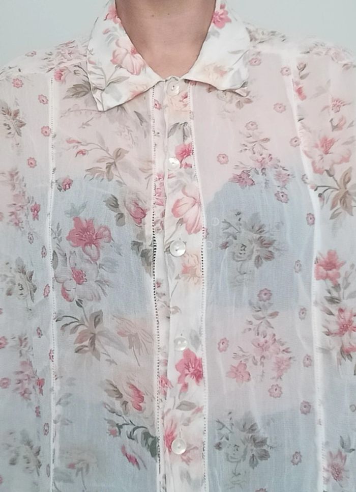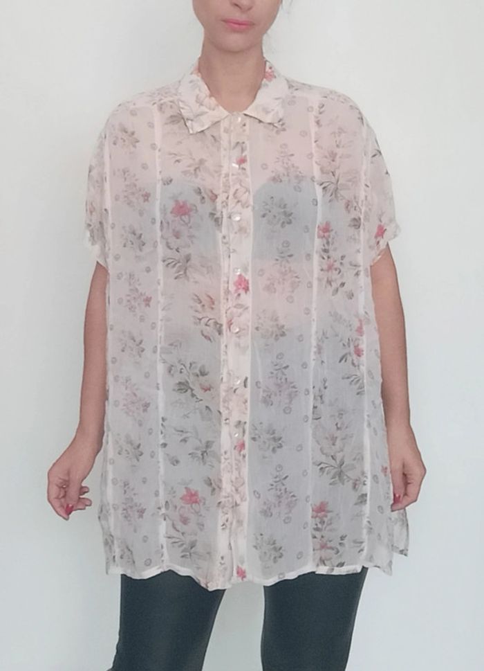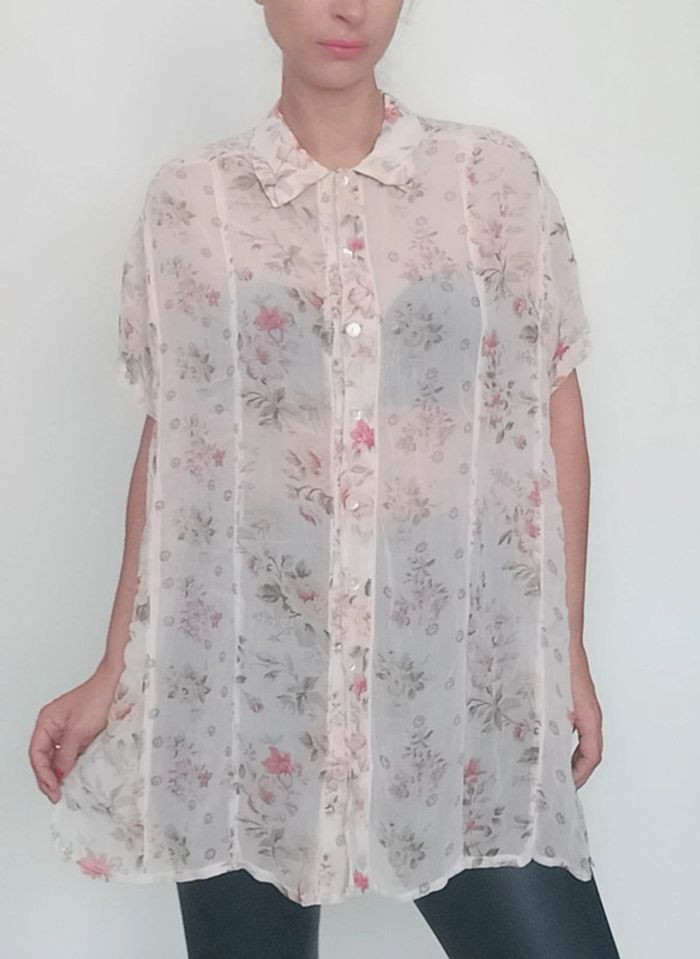 📣 Pour un lot, me contacter 😊🌸 -10% pour deux articles achetés -20% pour trois et + 🥰 #poupoupidouxl #poupoupidoutu 🫶🫶🫶🫶🫶🫶🫶🫶 Chemise longue assez transparente, motif fleuri, détail rare: boutonnée devant et derrière, chic, fluide et feminine, taille manquante mais peut convenir toute taille porte loose, semble convenir à un 42 au niveau des coutures épaules 😉 #chemisiervintage #chemisevintage #chemisierfleuri #chemisierchic #chemiselongue #chemisierlong #chemisierloose #chemisefleurie42 #pepitevintage