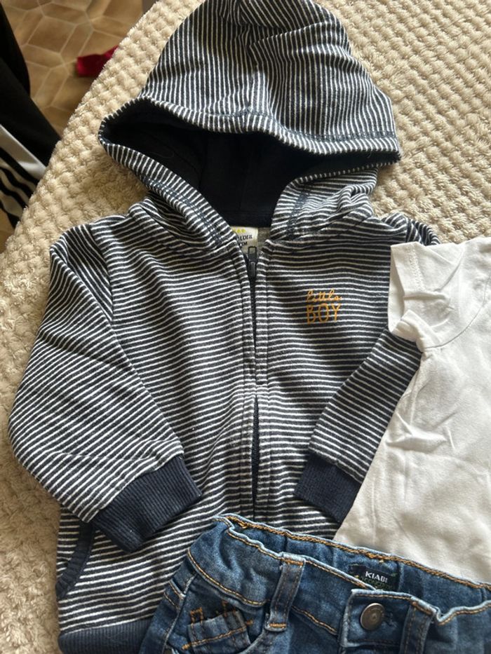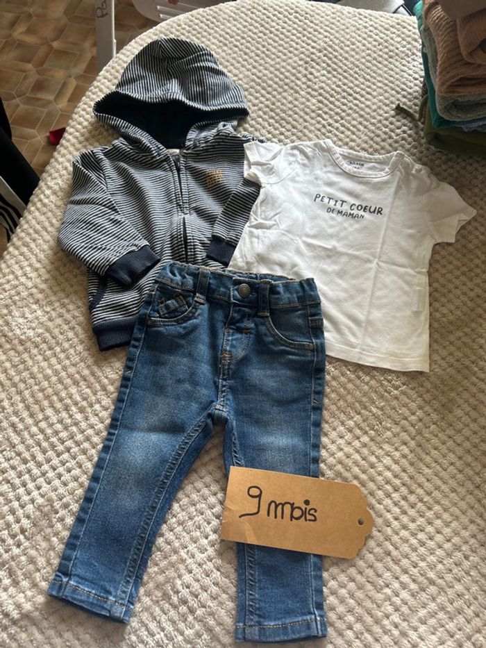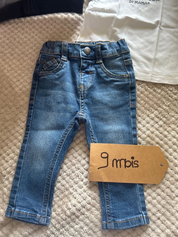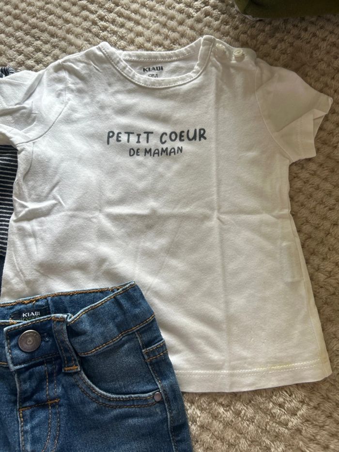 T-shirt blanc petite tache kiabi Veste rayé tape a l’œil Jean kiabi #tatouwbebegarcon9mois