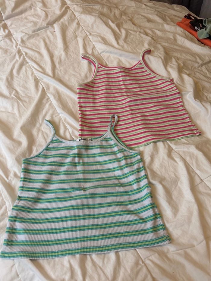 Lot de deux débardeur rayé, un rose vert blanc Un vert blanc jaune #tatouwfille12ans