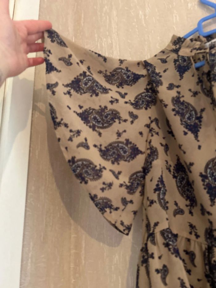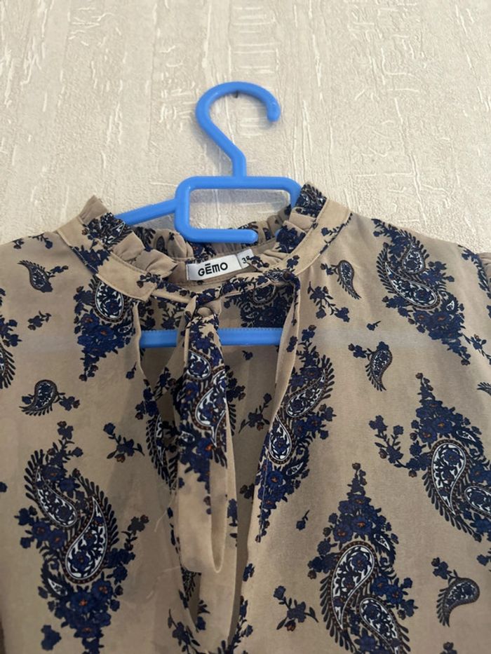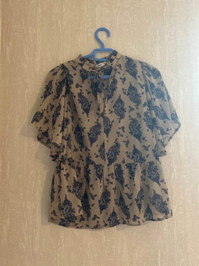 Blouse marron clair à motifs, petit lacet au col Manches bouffantes #tatouwfemme38