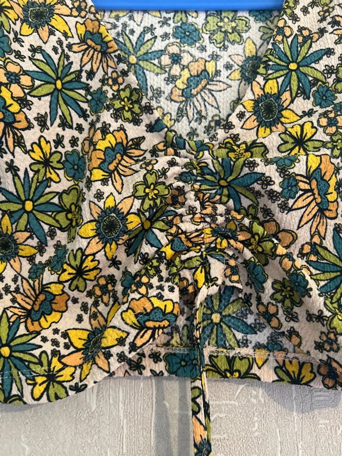 Crop top fleuri Froncé au millieu, avec lacet pour noeud #tatouwfemme34