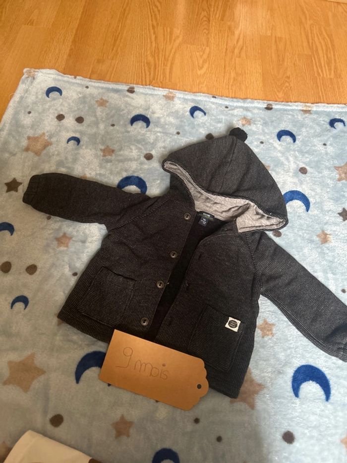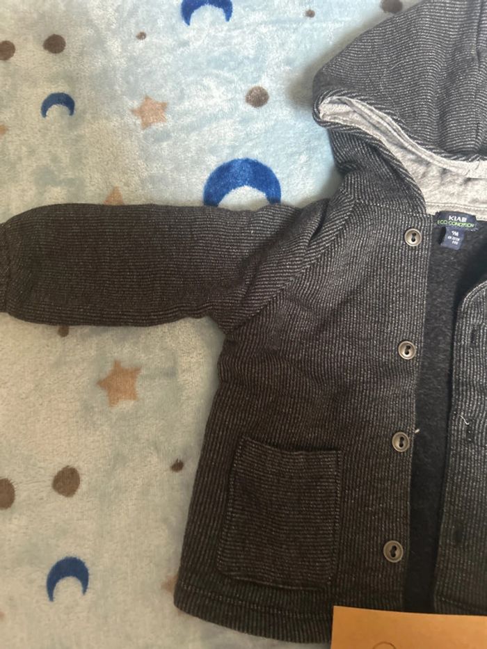 Manteau léger ou gilet épais Avec petits pompons sur la capuche Effet côtelé, gris foncé #tatouwbebegarcon9mois