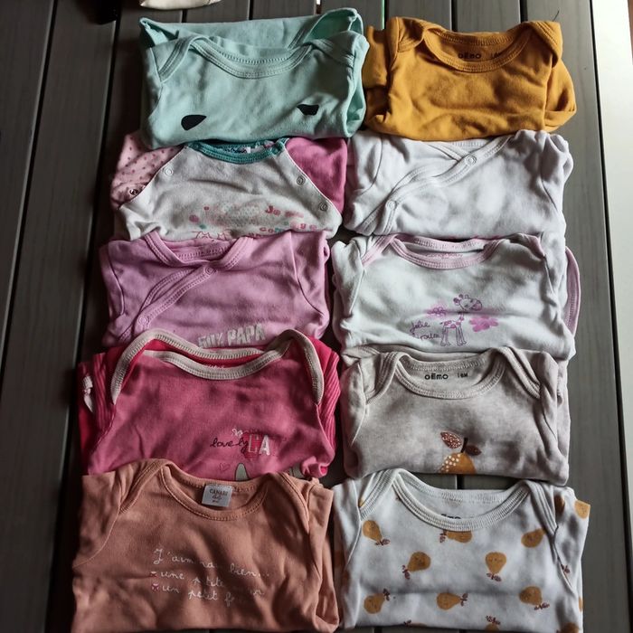 Lot de 10 bodies manches longues pour filles Comme neuf Taille :6 mois Diverses marques