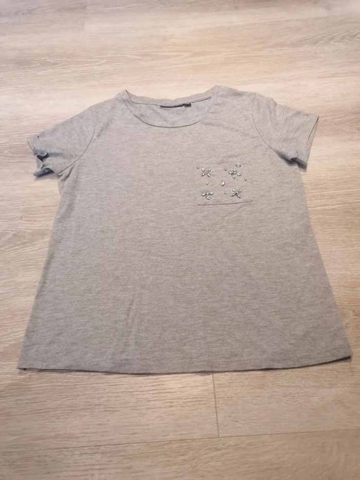 Bonjour, je vends ce tee shirt gris avec des brillants de la marque Kiabi taille S en très bon état. Lavé maison non fumeur.