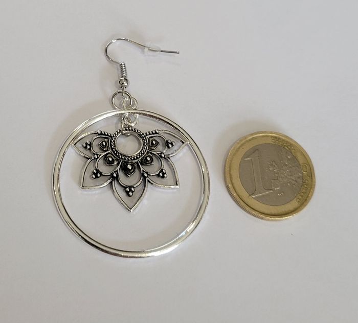 BOUCLES D'OREILLES ANNEAUX CREOLES LOTUS ARGENTE ! NEUF! - photo numéro 4