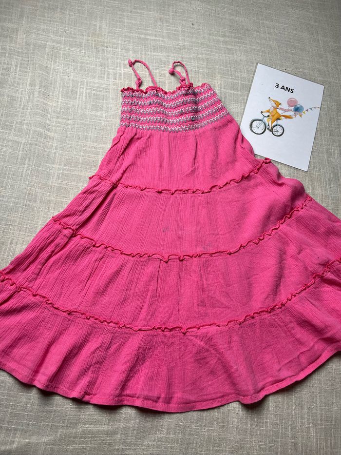 Jolie robe rose Taille 3 ans À signaler quelques taches (photo) qui partiront peut être avec du détachant. Groupez vos achats pour profiter des remises activées sur les lots et réduire vos frais de port #chrisbc17fille3ans