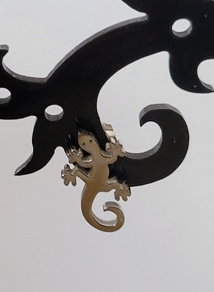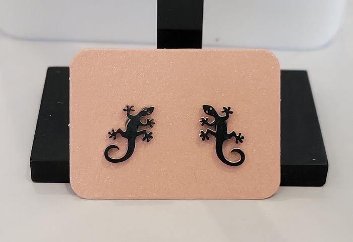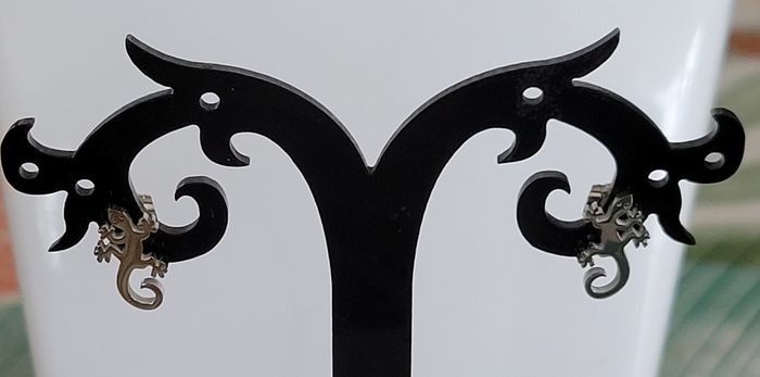 BOUCLES D'OREILLES CLOUS SALAMANDRE ARGENTE ! NEUF! - photo numéro 3