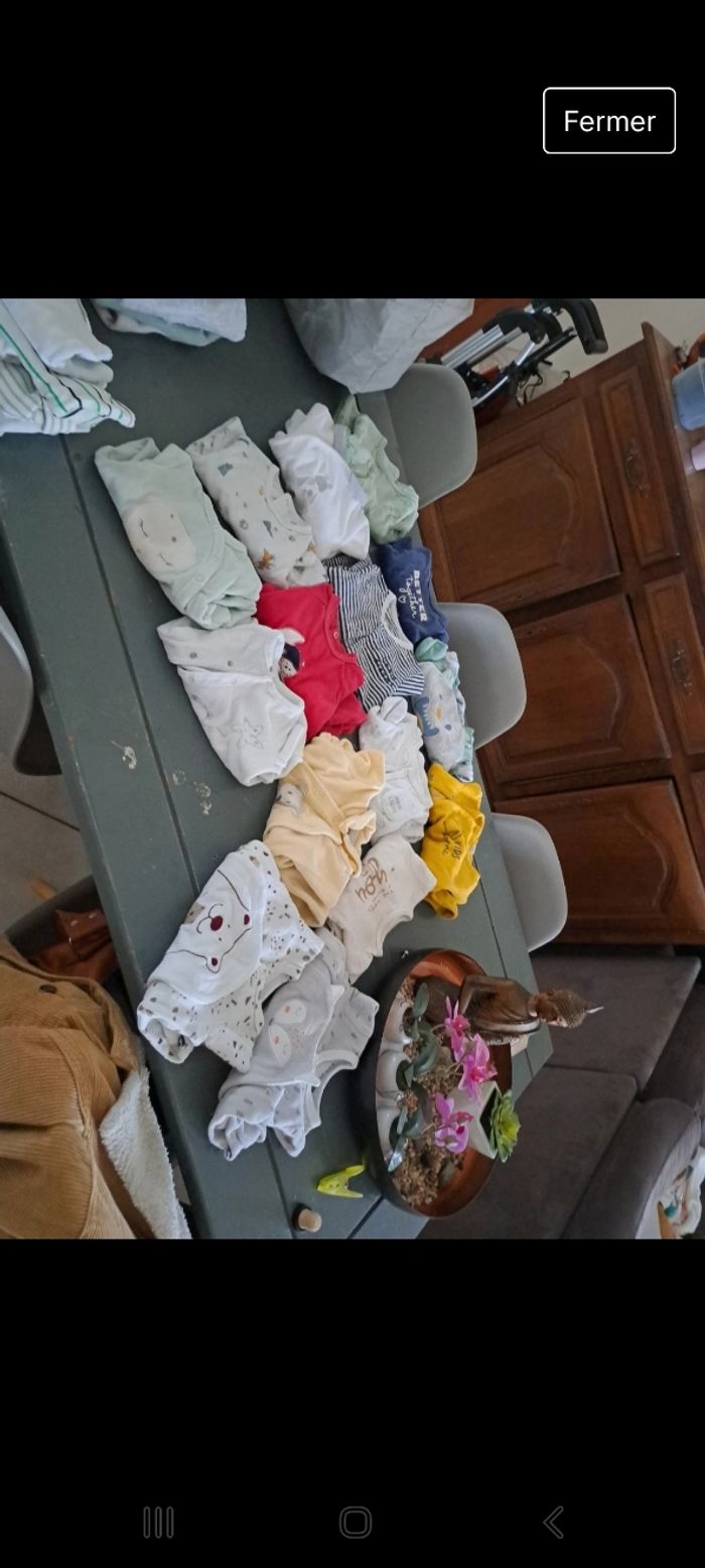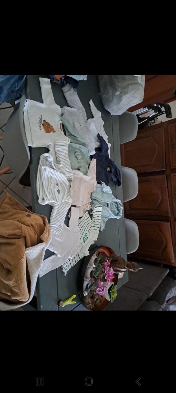4 pantalon 2 gilet 6 pull 2 haut manches longues 6 body manche courte 18 body manche longue 16 pyjama