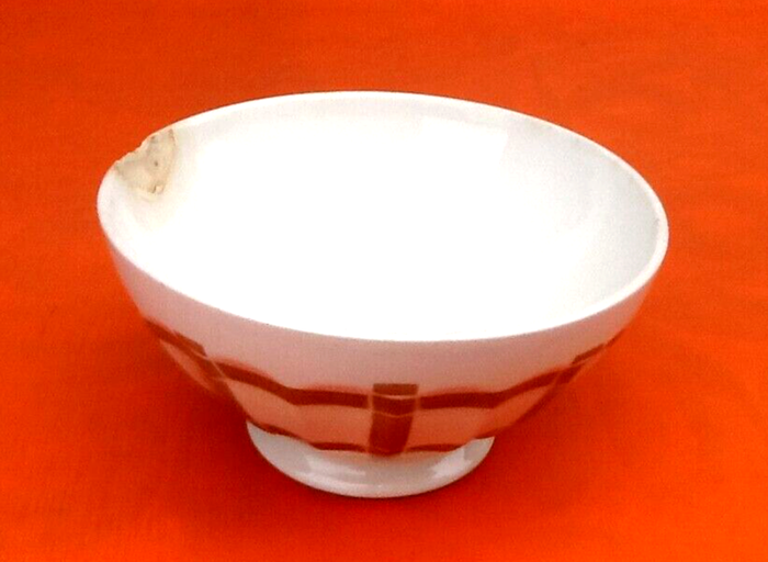 (article vendu en l' état, état d' usage, ébrechure, voir toutes les photos) Bol ancien (grand modèle) sur pied douche Modèle à facettes / Motif Ecossais Diamètre : 180mm Hauteur : 95mm Poids : 640grs